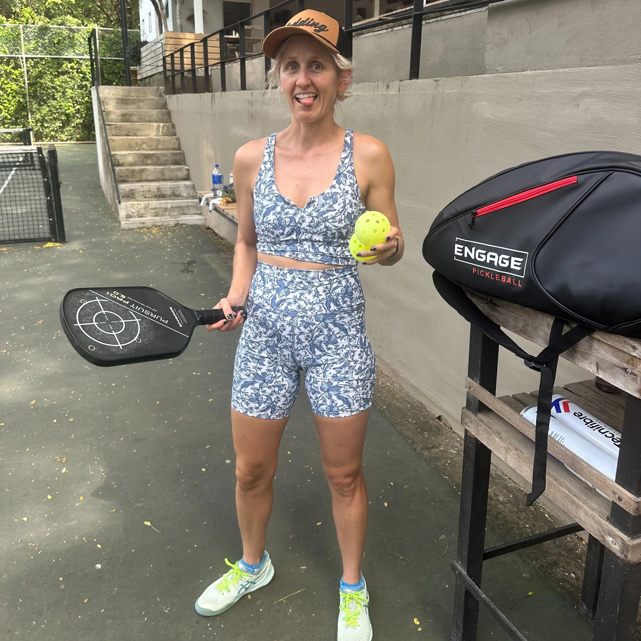 Reach out to someone you’ve lost touch with and invite them to play pickleball or grab coffee. Here I am with my childhood friend Molly in her first tournament. Now we are playing in Arizona together! This sport has rekindled our friendship and somehow she got me to wear a tennis dress for the first time since college.
